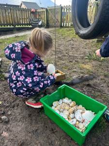 There was much excitement when 10 eggs arrived for the children to watch hatch in the classroom. All 10 chicks hatched; 6 girls and 4 boys were rehomed. We learnt about the life-cycle of a chicken, how they need to be cared for and even gave each one a name.