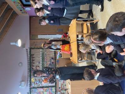 Moria and Judy from the 'Spread the Word' team came in to help the children make Christingles in preparation for the church service on Thursday. The children learnt about each part of the Christingle; the orange representing the world, the light of Jesus shining bright through the candle, the red ribbon representing the blood of Christ and the sweets being the fruits of the Earth.