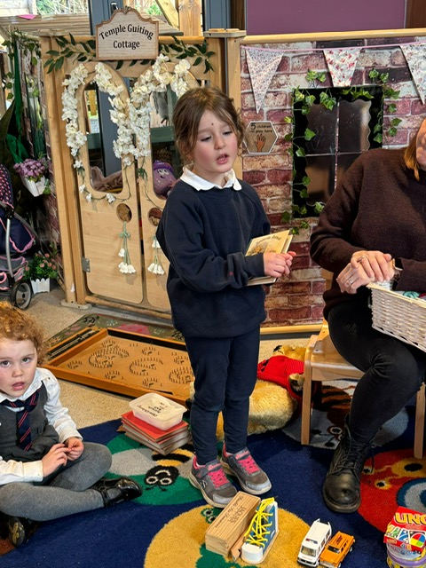 In maths Reception have been completing more complex repeating patterns. Afterwards they worked with a partner to create their own using the loose parts.