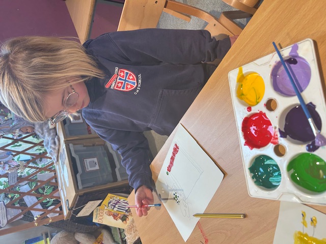 Y1 have been writing about the Gruffalo this half term and painted the characters. They thought of some fantastic adjectives to describe them. Pop in and have a look at our amazing display of them in the classroom