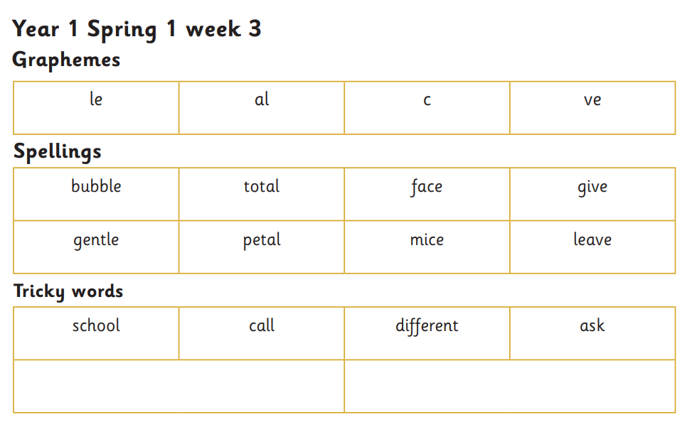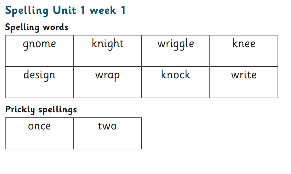Year 1 spelling to be tested Monday 29th September 2025