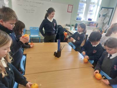 Moira and Judy, from Open the Book, came in to visit us. We talked all about Christingle and the meaning behind the different elements. Then we all made a Christingle ready to take to church with us on Thursday.