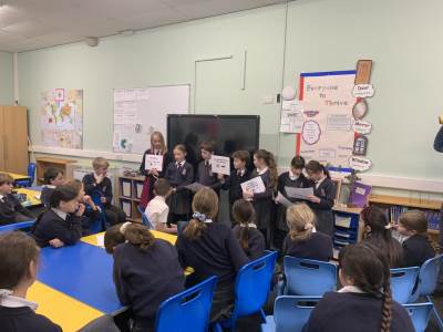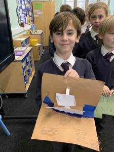 As part of Science week class 4 had a fantastic afternoon of science experiments based around the theme of gases. In Biology we looked at the gas produced by pond weed, how water fleas survive and we inflated a sheep lung! In Physics we made mini helicopters and investigated whether air resistance was affected by the size of the propellers. Chemistry went off with several bangs as we mixed alka seltzers and water in a sealed container, relit matches using gas and watched several demonstrations on what happens when gases mix...ask us about elephants toothpaste!
