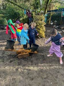 The clay is always a huge hit with these year groups. Lots of creativity and patience making some wonderful pieces. There were some culinary delights being thrown together in the mud kitchen and a homemade seesaw gave lots of entertainment.