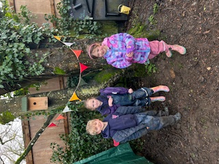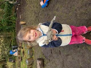 It has been a little bit wet recently but this did not dampen our spirits. The children all got wrapped up and embraced the mud! Reception have been looking at 'toys' as their topic this term. We chatted around base camp about how children played outside many years ago, with no plastic toys in sight. We made some conker targets, a conker run, our own take on skittles and stepping stones. It was great fun!