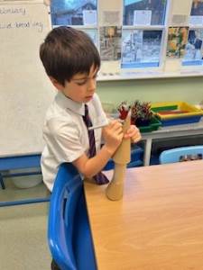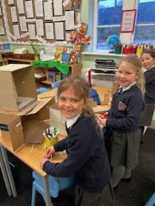 This week it was all about The Vikings. Class four were given the challenge of making their own long boats and anything that links to the Vikings. We had a go at using an axe (this was the only tool they used for making their longs boats) and some children made bow and arrows and spears.
