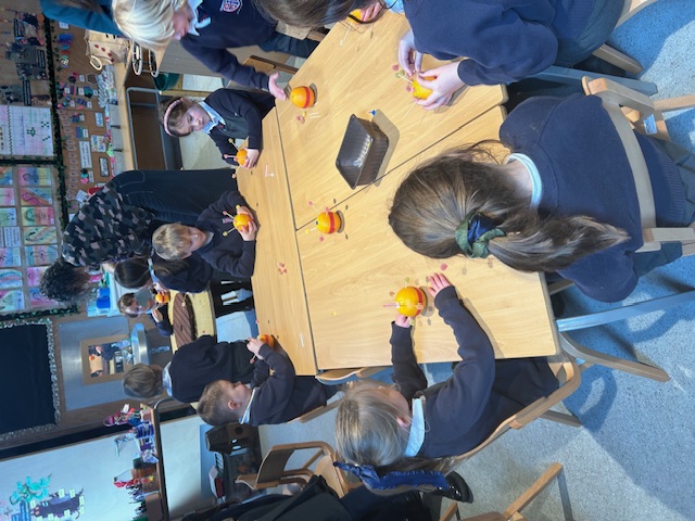 Katrina came in to teach us all about what a Christingle was and we each made one with the help of some of our Governors. We learnt about what each item represented and labelled the Christingle in our floor book.