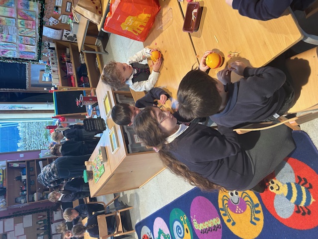 We enjoyed a lovely sunny morning at church for our Harvest Festival. Reception made handprint scarecrows and accompanied the Class 4 children when they performed their poem. We read 'The Scarecrow's Wedding' and 'The Lonely Scarecrow' in class, as well as singing 'Dingle, Dangle Scarecrow'. Our Year 1 children joined the rest of KS1 wearing their Autumn crowns for a performance of the 'Autumn Leaves' song. (Please take a look on the Class 2 page where you can see a video and hear their beautiful singing!)