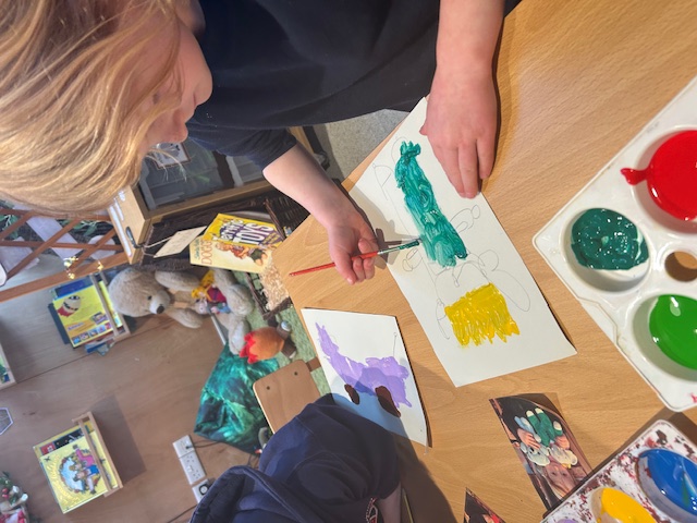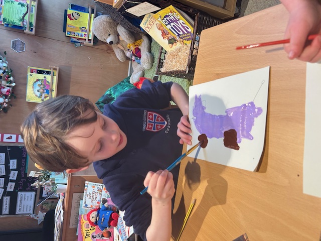 Y1 have been writing about the Gruffalo this half term and painted the characters. They thought of some fantastic adjectives to describe them. Pop in and have a look at our amazing display of them in the classroom