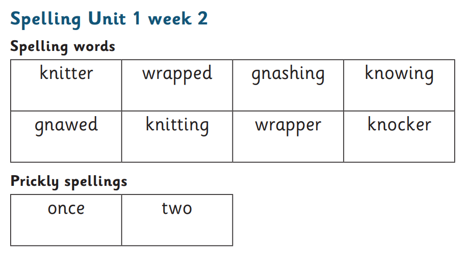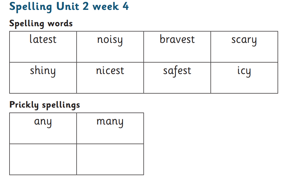 Year 2 spellings to be tested Monday 29th September 2025
