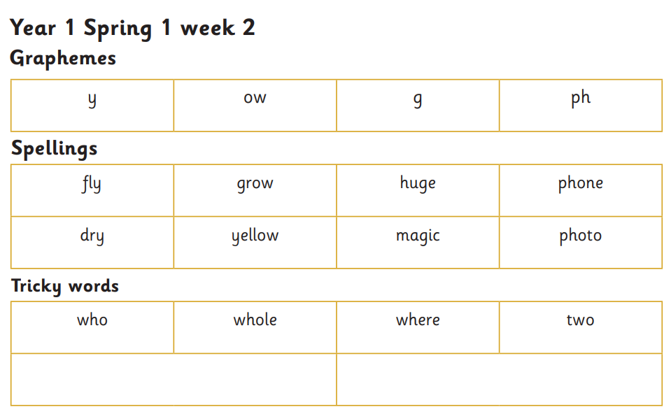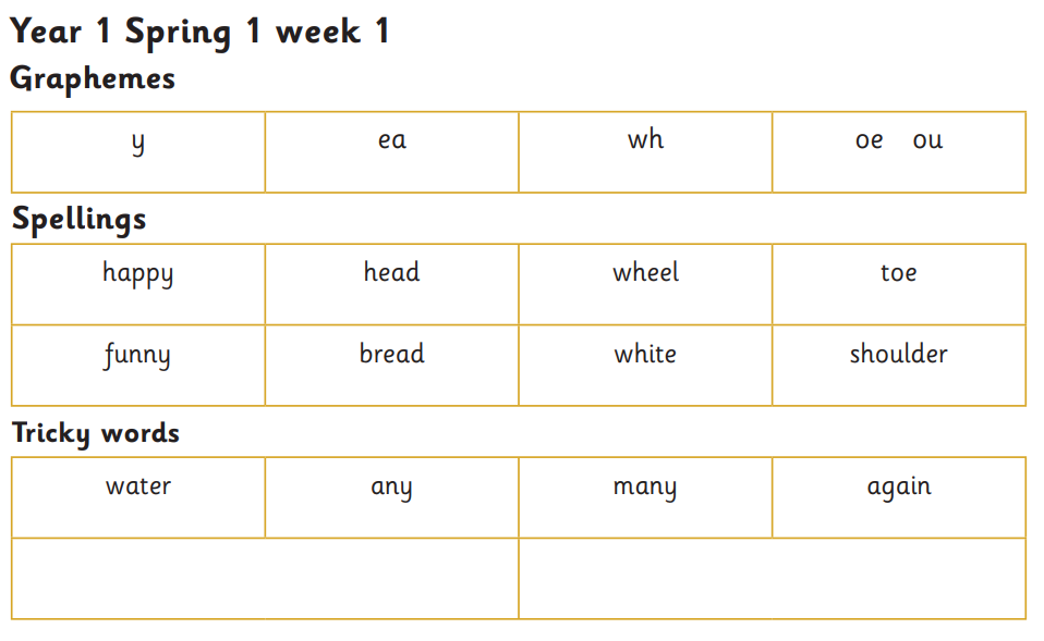 Year 1 spelling to be tested Monday 29th September 2025