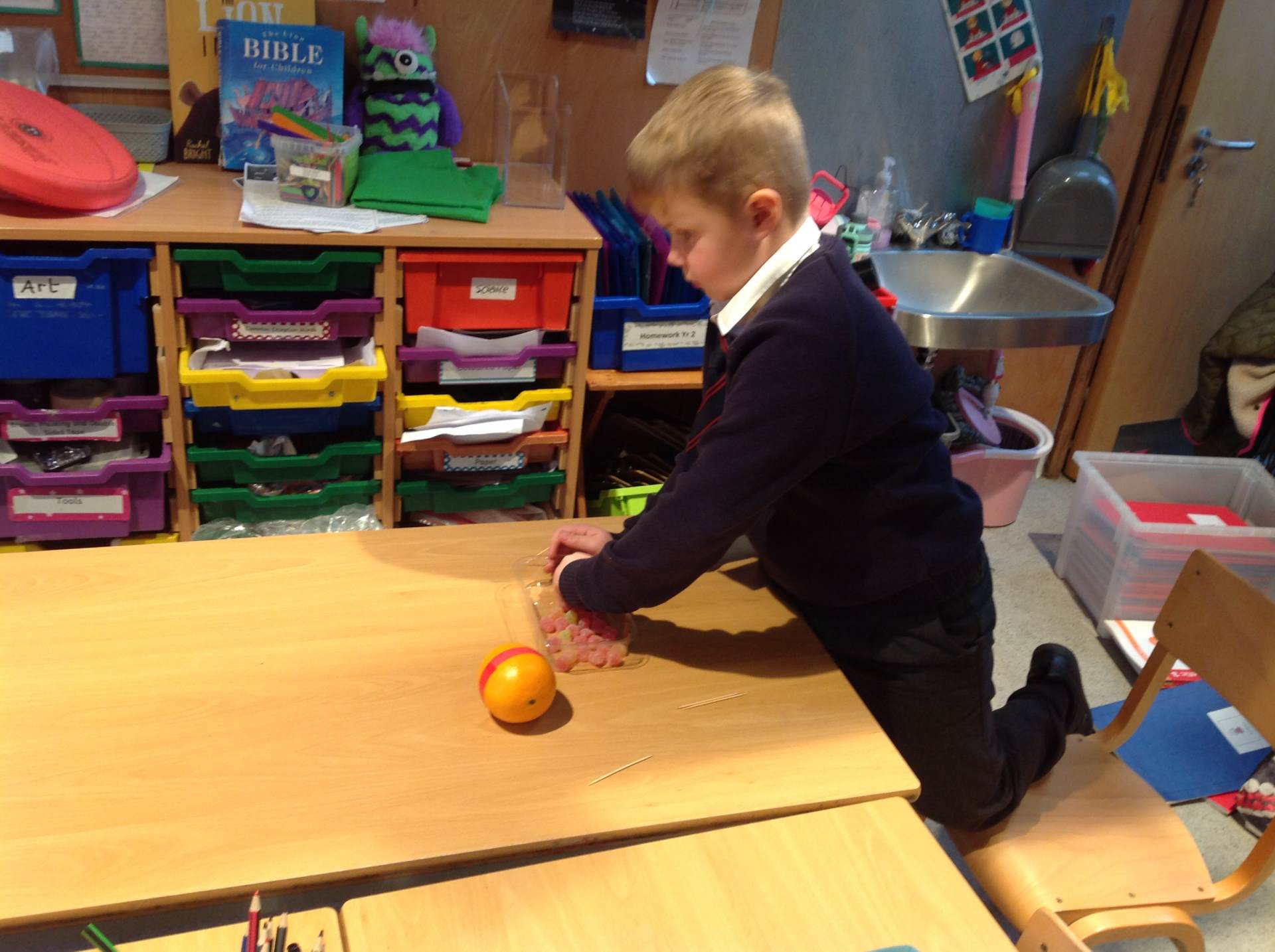 The children enjoyed making and learning about Christingles this week. Year 2 have started their maths unit on multiplication and division. Year 1 are working on addition and subtraction within 20. In English we have been practising our sentence structures and proof reading our writing. We have read the story 'The Great New Year Race' and are writing clear, well structured sentences about this story. In science last week we have been considering what animals need to survive. We pretended we were on desert islands had to write letters to a passing ship asking for vital supplies to provide us with food, water, shelter and air (oxygen). This week in groups we made different habitats (polar, desert, woodland, rain forest, beaches and oceans). The children then choose animals which would like in their habitat and answered questions about these animals to work out which animal group they belonged to.