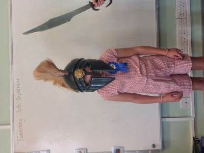 We had great fun exploring lots of different activities during our Ancient Greek workshop. We began the day with a battle between the Spartans and the Athenians, the Spartans had spears whilst the Athenians had a strong defence with shields. The Spartans eventually won, despite the clever formation used by the Athenians, when one of the Generals snuck around behind the Athenians so they were surrounded!