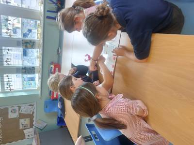 We had great fun learning all about physical and chemical changes with Diatom Dave this morning. We looked at how we could remove the colour from skittles, this was a physical change until the colours were all mixed together and it became a chemical change. We added water to snow powder, it expanded and became fluffy- another physical change. We added citric acid to water and shook it until the crystals were all dissolved. Then we put a balloon with baking soda in on the top of the bottle, when the baking soda was tipped in it produced carbon dioxide and filled the balloon with gas. This was a chemical change. We tipped acetone over a polysterene cup, this created holes in the cup due to depolymerisation! This is where the molecules are broken down. This was a chemical change too.