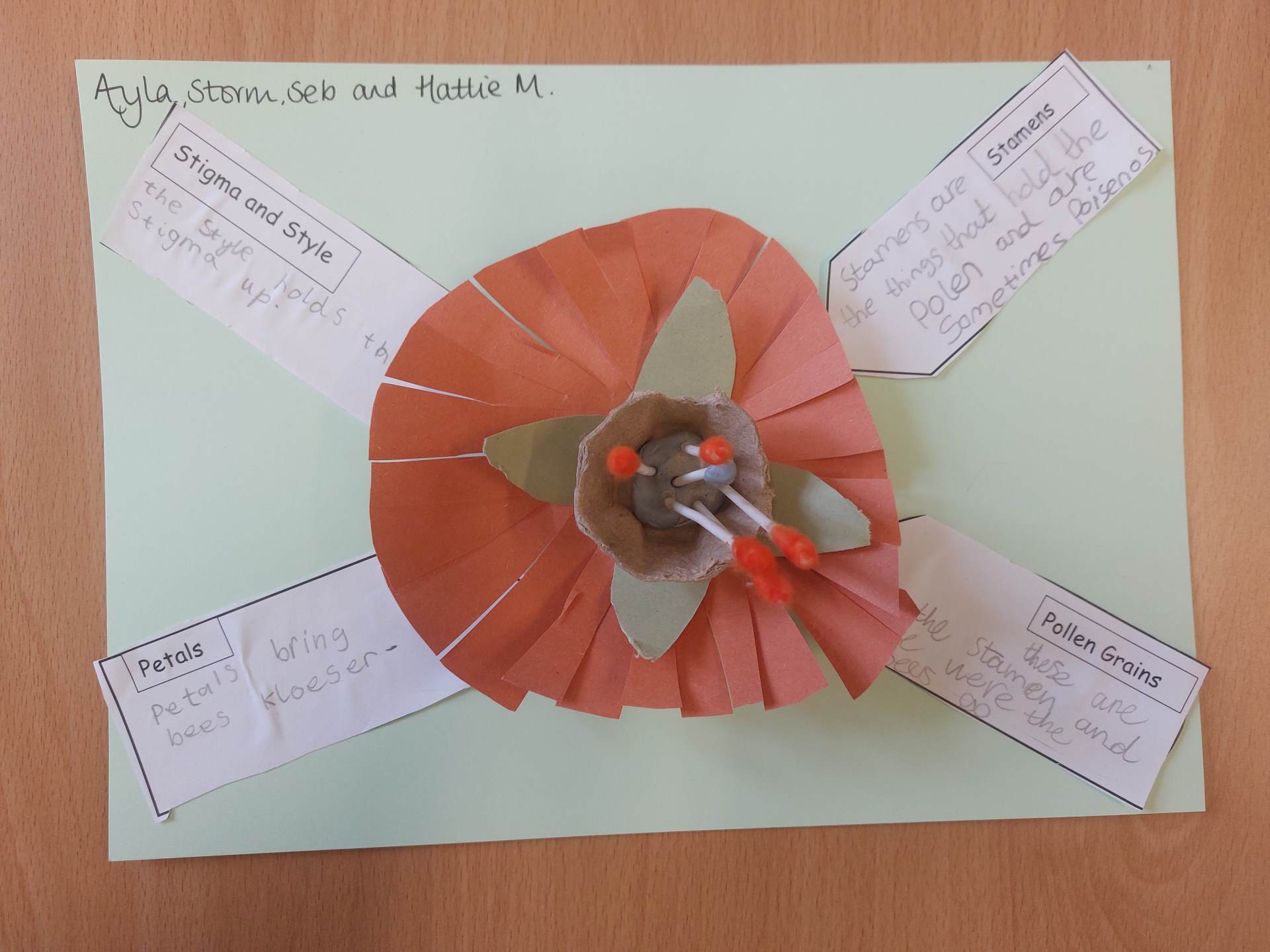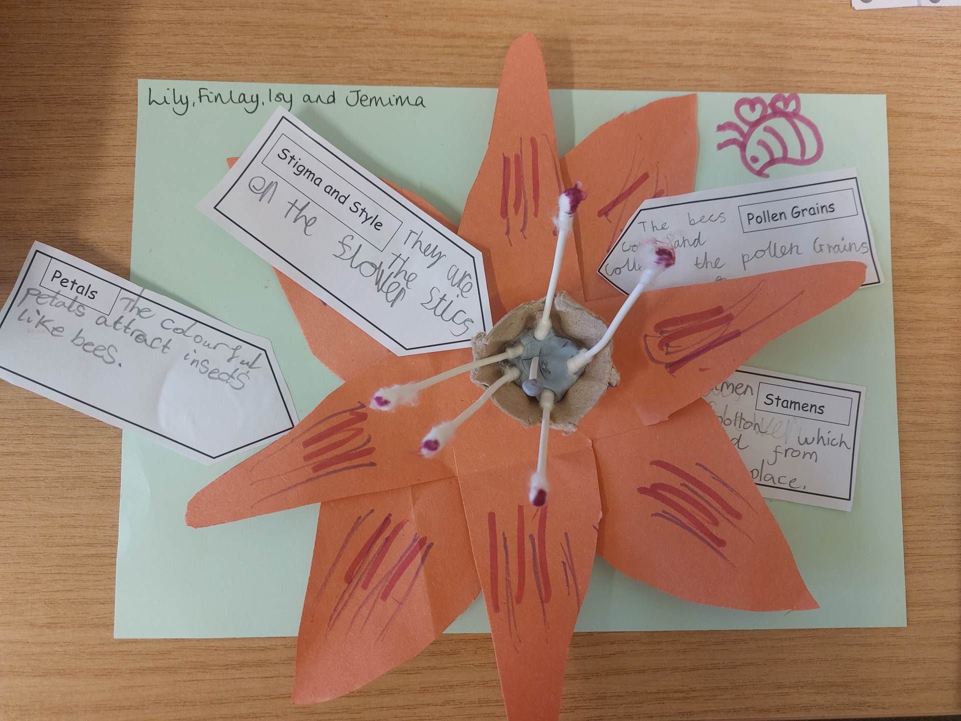 In science, we are learning about flowering plants. We started the unit with some observation drawings of flowers and then moved onto making 3D models of flowers to show their stamen, stigma and style. We looked at the pollen grains and how the beautiful petals attract bees.