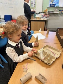 This week it was all about The Vikings. Class four were given the challenge of making their own long boats and anything that links to the Vikings. We had a go at using an axe (this was the only tool they used for making their longs boats) and some children made bow and arrows and spears.